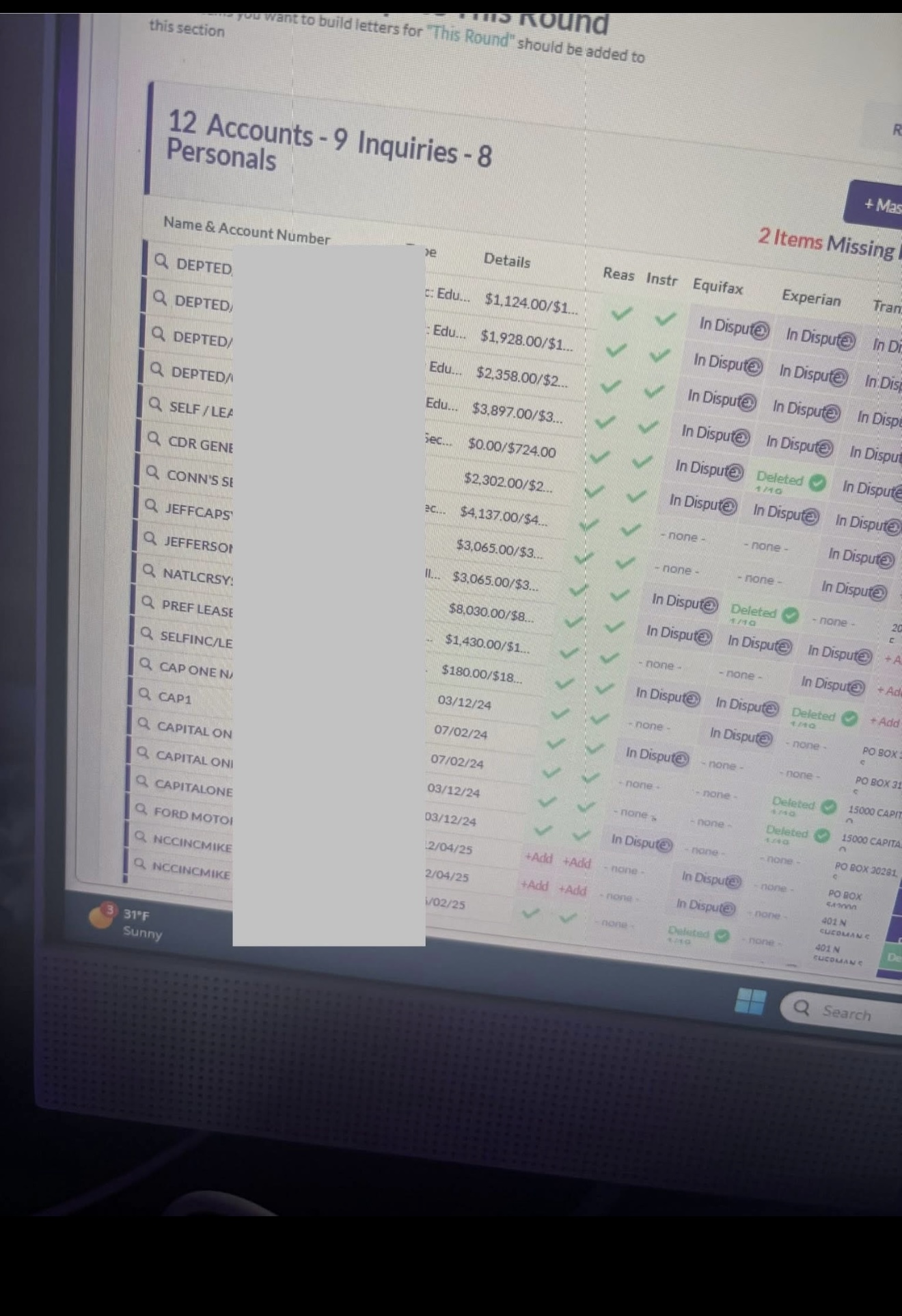 We assist clients in challenging questionable negative items that may be affecting their credit reports.